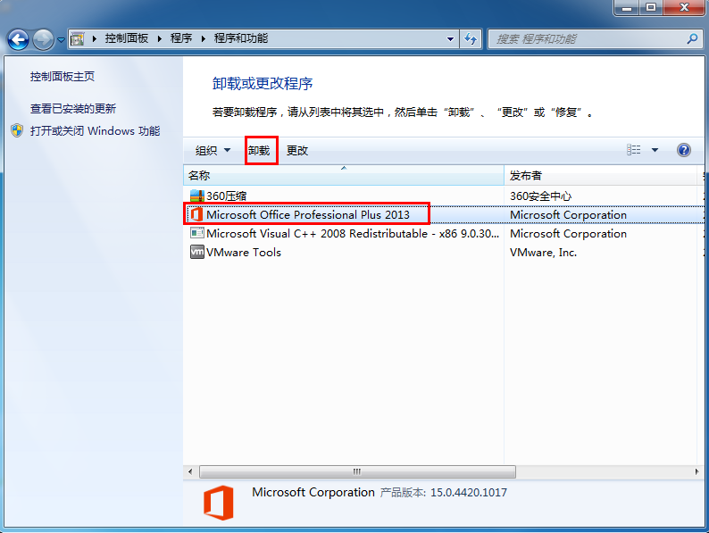 Windows 7、Windows Vista或Windows XP下卸载Office